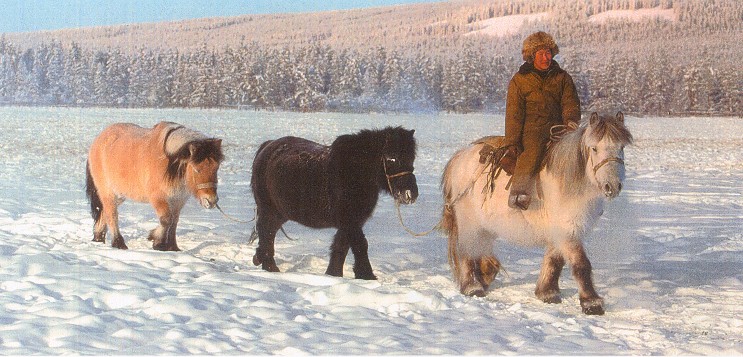 Far, far away from here, at the other end of the world, lives a hairy little horse by the name of Yakut. It lives in a frozen country called Yakutia, in eastern Siberia, and is the only horse which can survive within the Arctic Circle. It is always amazing to note how the horse has been able to adapt to such incredibly different and hostile climates that it defies belief. Think of the desert horses of Namibia and South Africa, one of the cruellest in the world, or the Sable Island horses on the Atlantic coast, battered by wind and tides throughout the year. But who could have imagined that above the Arctic Circle a breed of horses could exist, able to endure temperatures ranging from 40o C (104o F) in summer to –60o C (-76o F) during the long Arctic winter months? OriginsThe origins of the Yakut horse are still uncertain, but researchers believe that it is probably one of the oldest breeds in existence. The genetic and immunity markers seem to show similarity with the original breeds of Central Asia (Akhal-Téké, Arab, Kazakh, Kirghiz and other saddle horses), which has led to the theory that the Yakut horse is not a native of Siberia, but that he was taken there by the ancestors of the Sakha people. These latter first arrived in the region by following the Lena river, around the 13th century, followed by successive waves of immigrants. The Lena’s source is in Lake Baikal, further south, near Irkutsk, on the border of western Mongolia. Other researchers think that the breed is linked to the Mongolian horse, which also is perfectly feasible. Whatever its origins, one thing is certain: no other breed offers such a stunning example of a prefect adaptation to its environment (except perhaps the Namibian horse, at the other climatic extreme – see article in Équi-Libre, vol. 22, no. 2, Autumn 2003, p. 14.