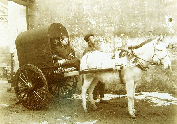 Chinese mule and cart, circa 1900. |