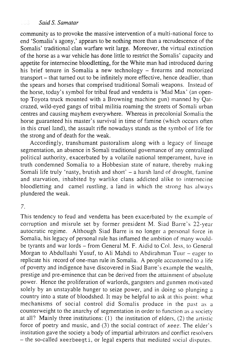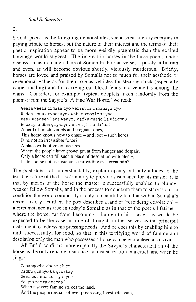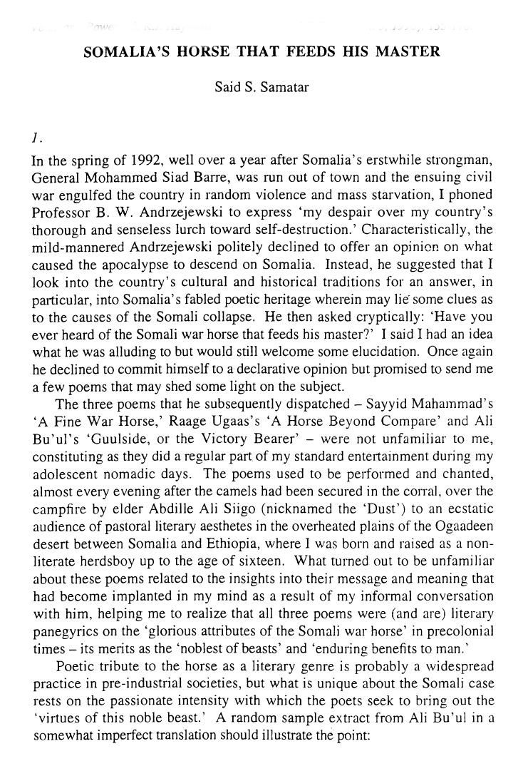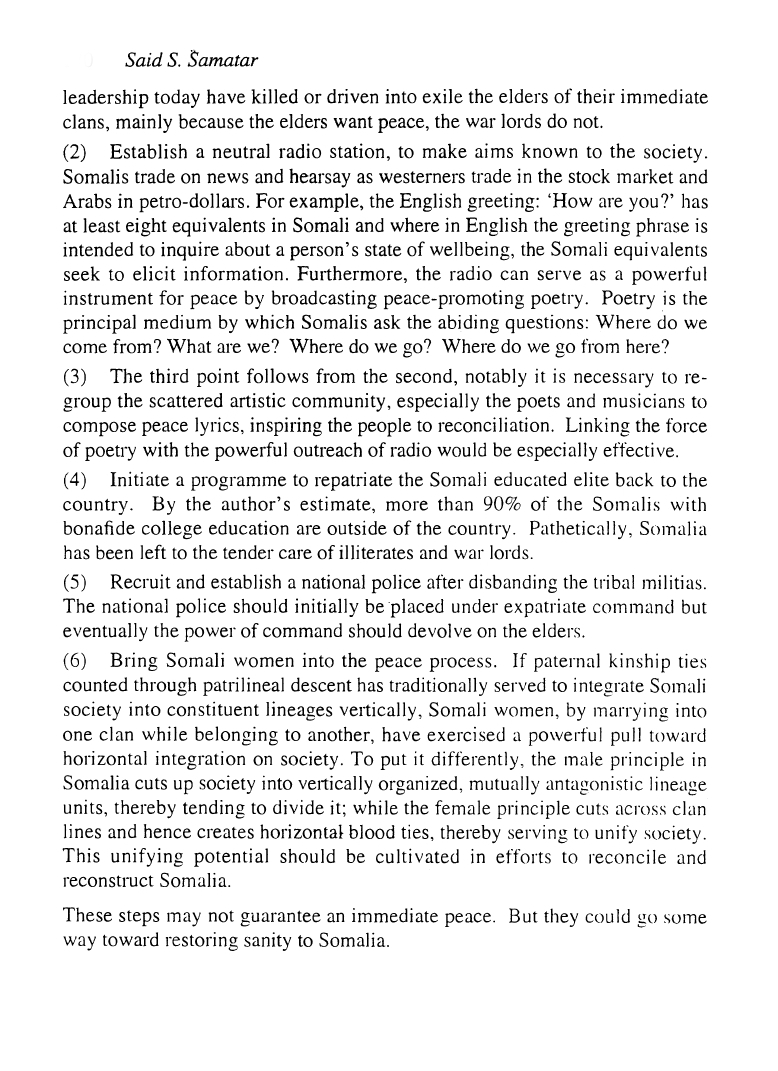 nation’s language remained unwritten until 1972. Professor Samatar preserved the
