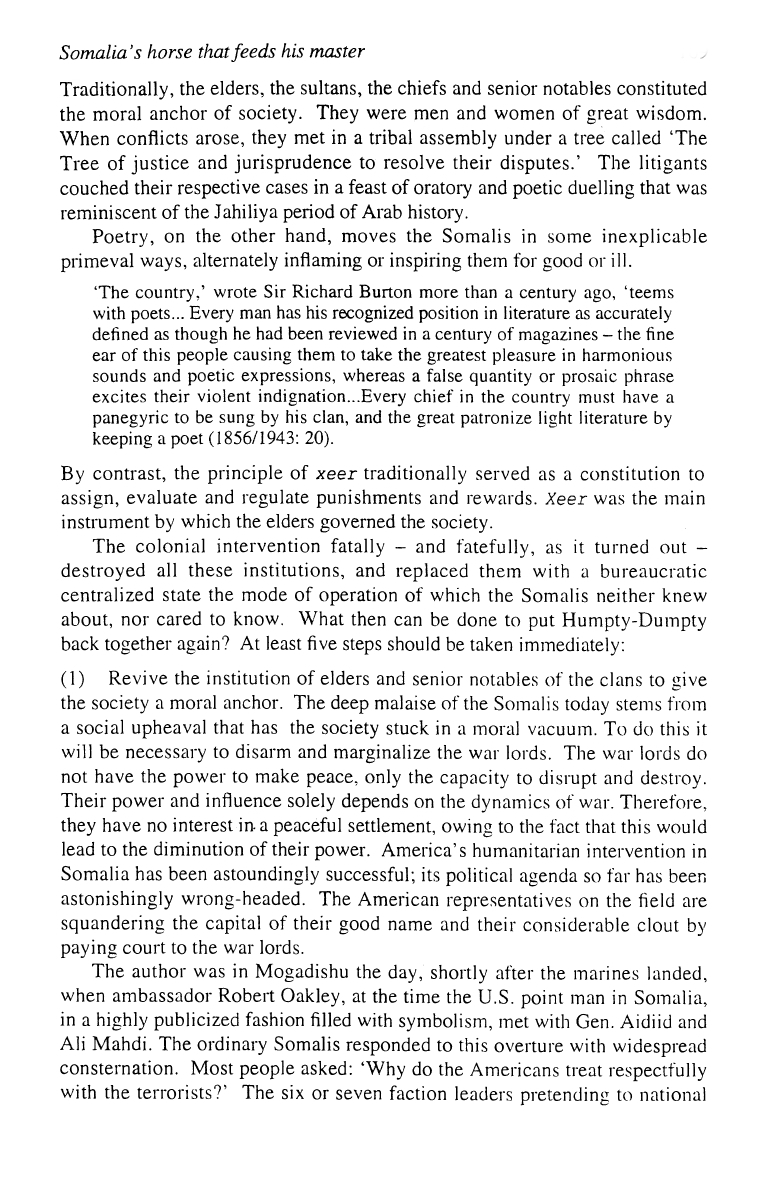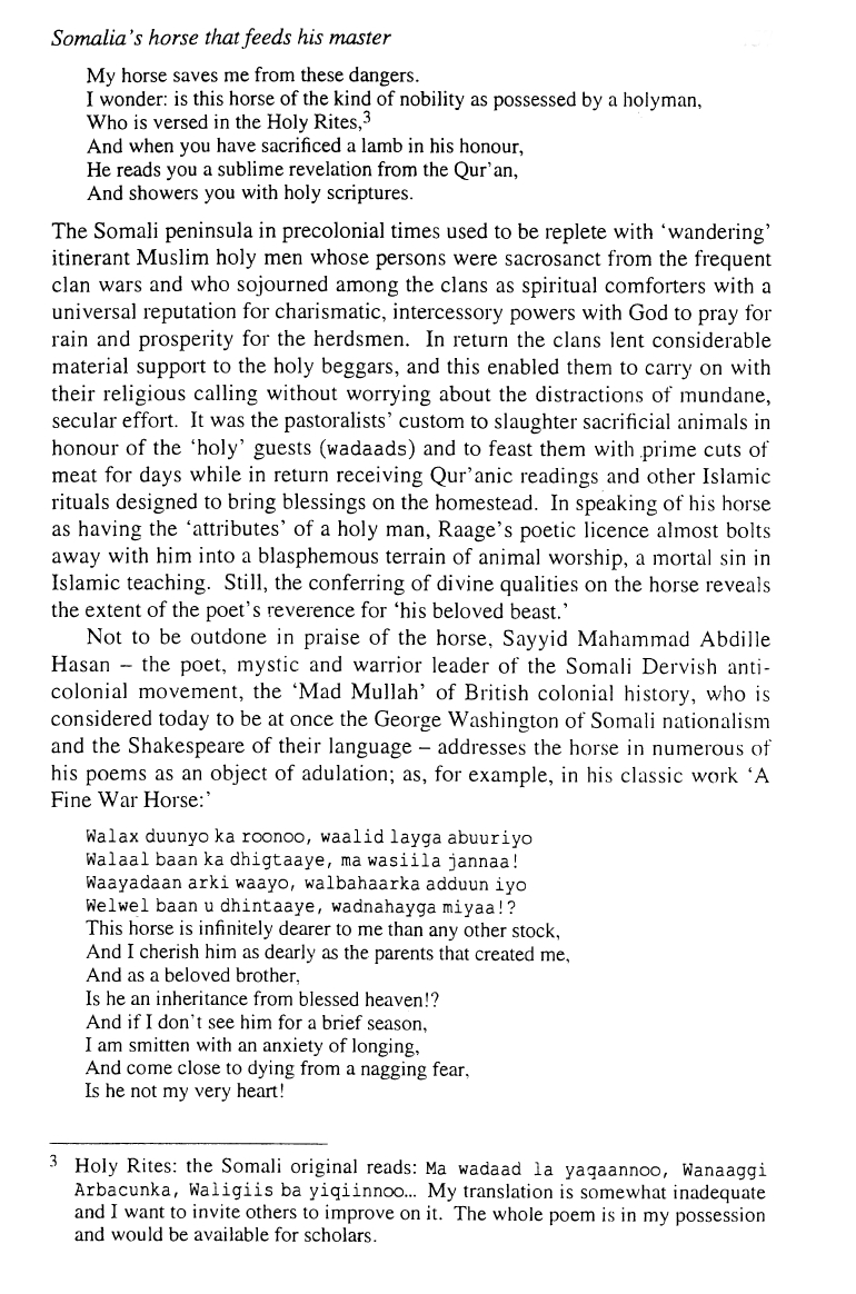 practices of his Somali homeland. Though the art of horsemanship had existed in