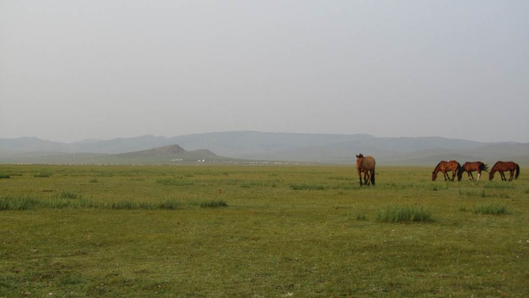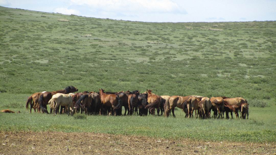 Area Description The area around Chin Tolgoin Balgas, the ruins of a settlement built during Mongolia's Khitan period, is a desert-like micro-system. The area is extremely saline and although the stream encircling the ruins to the south, west and east is fresh water, allowing livestock to live in the area, the soil itself has a very high salt content and many grasses do not flourish. There was some desert shrub and lots of Wormwood. In some parts, there is no vegetation at all. The human population was sparse. There were only around seven or eight Gers in a 35km radius. We observed seven or eight bands of horses in the area all around forty to sixty strong. The horses range wide when grazing seeking out patches of grass. All the horses we did see looked well fed except for those individuals nearing the end of their lives. Our horses had to be re-tethered frequently as they exhausted the meagre grass supplies within their tether circle. Daasa and the other herders in the area also maintained flocks of sheep, goats and a herd of cows.