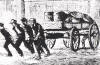 forced to pull wagons by hand, trains and ships full of cargo sat unloaded, tram