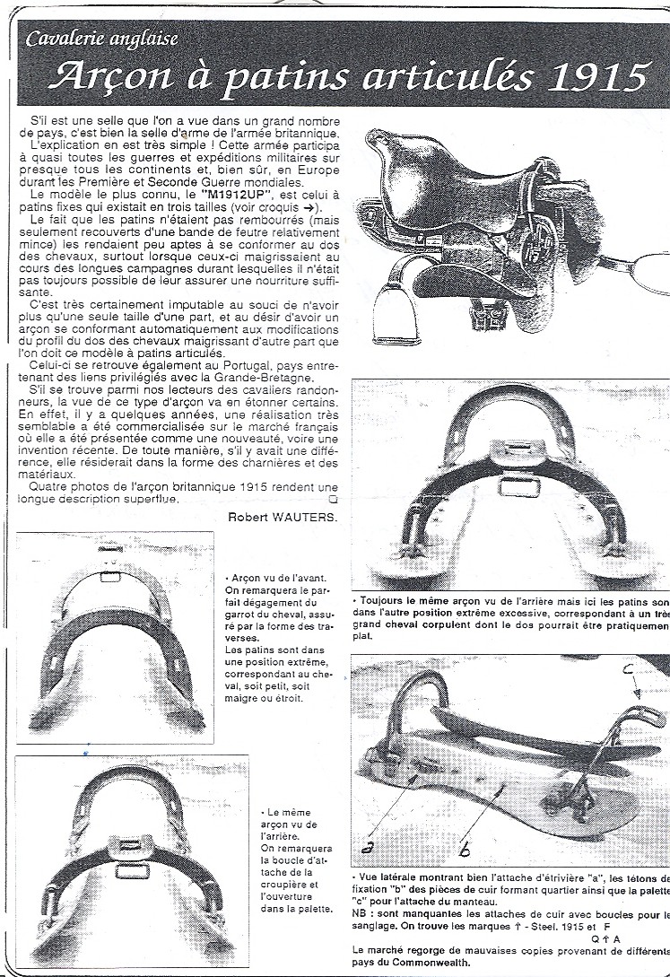 Belgian Long Rider Robert Wauters has written a series of articles in French about saddles from the English, Belgian and German cavalry from 1868 to 1943. Few people know that these European cavalrymen were using treeless saddles and saddles with articulated trees so long ago! (Click on any image to enlarge it.)