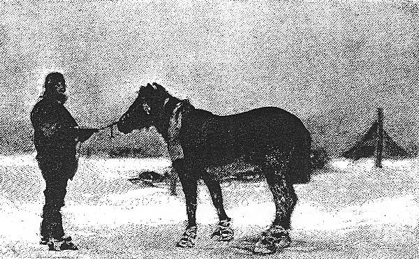 Antarctica, where he unloaded the horses and dogs he had brought for his team's