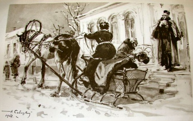 We had a black stallion, who drove in a pair. At night they used to put me in harness with him. That Polkan, as he was called, did not understand a joke but was simply vicious as the devil. I was in the stall next to his and sometimes we bit one another seriously. Feofan was not afraid of him. He would come up and give a shout: it looked as if Polkan would kill him, but no, he'd miss, and Feofan would put the harness on him. Once he and I bolted down Smiths Bridge Street. Neither my master nor the coachman was frightened; they laughed, shouted at the people, checked us, and turned so that no one was run over. In their service I lost my best qualities and half my life. They ruined me by watering me wrongly, and they foundered me. . . . Still, for all that, it was the best time of my life. At twelve o'clock they would come to harness me, black my hoofs, moisten my forelock and mane, and put me in the shafts. The sledge was of plaited cane upholstered with velvet; the reins were of silk, the harness had silver buckles, sometimes there was a cover of silken fly-net, and altogether it was such that when all the traces and straps were fastened it was difficult to say where the harness ended and the horse began. We were harnessed at ease in the stable. Feofan would come, broader at his hips than at the shoulders, his red belt up under his arms: he would examine the harness, take his seat, wrap his coat round him, put his foot into the sledge stirrup, let off some joke, and for appearance sake always hang a whip over his arm though he hardly ever hit me, and would say, "Let go!" and playfully stepping from foot to foot I would move out of the gate, and the cook who had come out to empty the slops would stop on the threshold and the peasant who had brought wood into the yard would open his eyes wide. We would come out, go a little way, and stop. Footmen would come out and other coachmen, and a chatter would begin. Everybody would wait: sometimes we had to stand for three hours at the entrance, moving a little way, turning back, and standing again. At last there would be a stir in the hall: old Tikhon with his paunch would rush out in his dress coat and cry, "Drive up!" (In those days there was not that stupid way of saying, "Forward!" as if one did not know that we moved forward and not back.) Feofan would cluck, drive up, and the prince would hurry out carelessly, as though there were nothing remarkable about the sledge, or the horse, or Feofan - who bent his back and stretched out his arms so that it seemed it would be impossible for him to keep them long in that position. The prince would have a shako on his head and wear a fur coat with a grey beaver collar hiding his rosy, black-browed, handsome face, that should never have been concealed. He would come out clattering his sabre, his spurs, and the brass backs of the heels of his overshoes, stepping over the carpet as if in a hurry and taking no notice of me or Feofan whom everybody but he looked at and admired. Feofan would cluck, I would tug at the reins, and respectably, at a foot pace, we would draw up to the entrance and stop. I would turn my eyes on the prince and jerk my thoroughbred head with its delicate forelock. . . . The prince would be in good spirits and would sometimes jest with Feofan. Feofan would reply, half turning his handsome head, and without lowering his arms would make a scarcely perceptible movement with the reins which I understand: and then one, two, three . . . with ever wider and wider strides, every muscle quivering, and sending the muddy snow against the front of the sledge, I would go. In those days, too, there was none of the present-day stupid habit of crying "Oh!" as if the coachman were in pain, instead of the sensible "Be off! Take care!" Feofan would shout, "Be off! Look out there!" and the people would step aside and stand craning their necks to see the handsome gelding, the handsome coachman, and the handsome gentleman. . . . I was particularly fond of passing a trotter. When Feofan and I saw at a distance a turn-out worthy of the effort, we would fly like a whirlwind and gradually gain on it. Now, throwing the dirt right to the back of the sledge, I would draw level with the occupant of the vehicle and snort above his head: then I would reach the horse's harness and the arch of his troika, and then would no longer see it but only hear its sounds in the distance behind. And the prince, Feofan, and I, would all be silent, and pretend to be merely going on our own business and not even to notice those with slow horses whom we happened to meet on our way. I liked to pass another horse but also liked to meet a good trotter. An instant, a sound, a glance, and we had passed each other and were flying in opposite directions. The gate creaked and the voices of Nester and Vaska were heard. Fifth Night The weather began to break up. It had been dull since morning and there was no dew, but it was warm and the mosquitoes were troublesome. As soon as the horses were driven in they collected round the piebald, and he finished his story as follows: The happy period of my life was soon over. I lived in that way only two years. Towards the end of the second winter the happiest event of my life occurred, and following it came my greatest misfortune. It was during carnival week. I took the prince to the races. Glossy and Bull were running. I don't know what people were doing in the pavilion, but I know the prince came out and ordered Feofan to drive onto the track. I remember how they took me in and placed me beside Glossy. He was harnessed to a racing sulky and I, just as I was, to a town sledge. I outstripped him at the turn. Roars of laughter and howls of delight greeted me. When I was led in, a crowd followed me and five or six people offered the prince thousands for me. He only laughed, showing his white teeth. "No," he said, "this isn't a horse, but a friend. I wouldn't sell him for mountains of gold. *Au revoir*, g